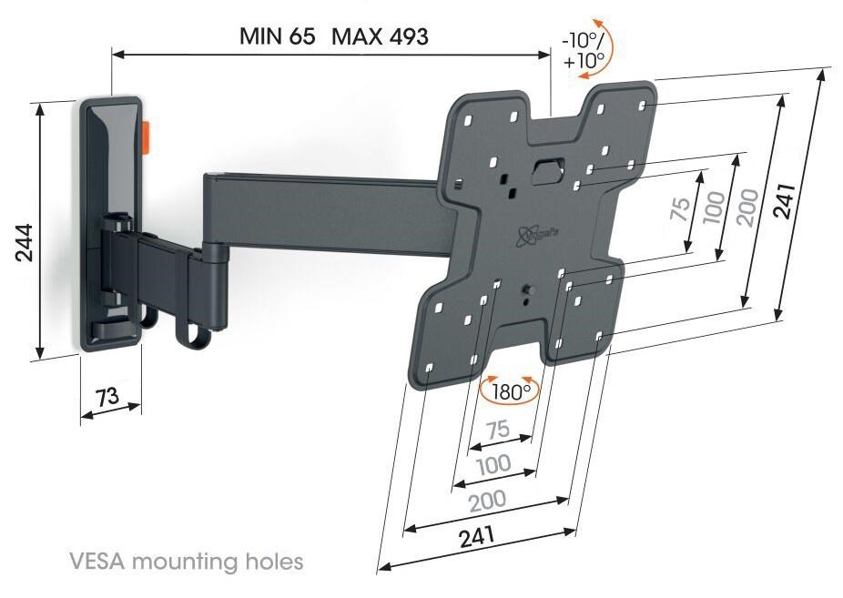 - Otočte televízor až o 180° vďaka 49 cm dlhým ramenám