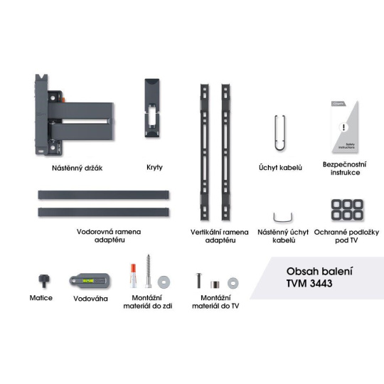 TVM 3443COMFORT Nástenné dvojité rameno pre televízory s uhlopriečkou od 32 do 65 palcov Štýlový a bezpečný Chcete si optimálne vychutnať televízor z akéhokoľvek miesta v miestnosti? A preto hľadáte štýlový a spoľahlivý nástenný držiak na televízor, aby bol váš televízor v bezpečí? Tento nástenný TV držiak radu COMFORT... viac