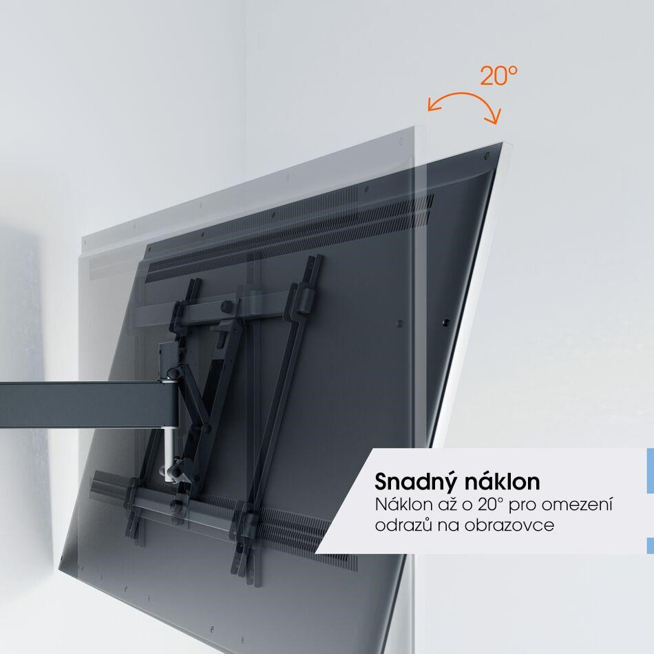 - Jednoduché nakláňanie - vyhnite sa odrazom a skláňajte TV až do uhla 20°, zabezpečenie a uvoľnenie pomocou TiltAnchor™