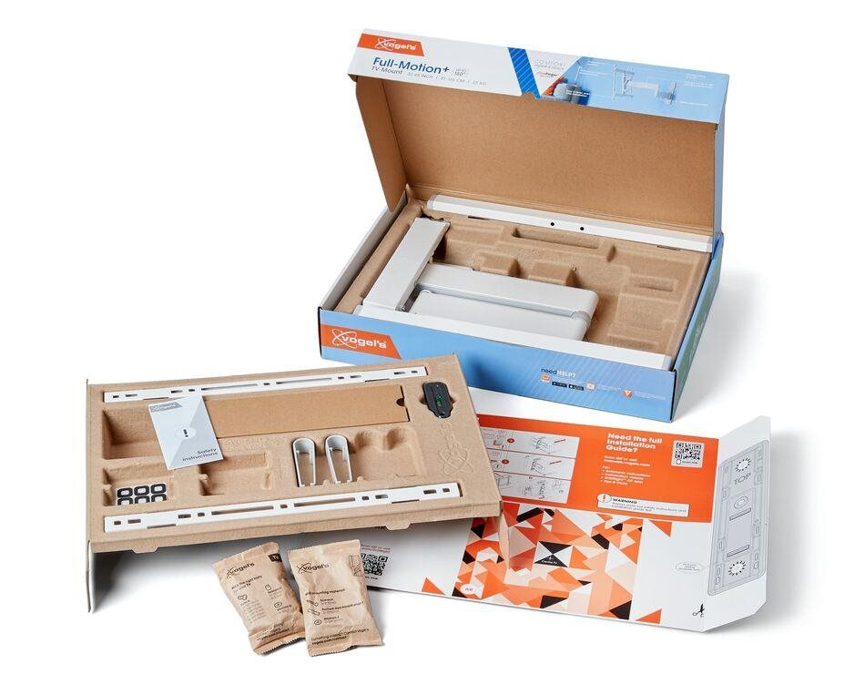 Spoločnosť Vogel's vám maximálne uľahčí inštaláciu držiaku. Balenie obsahuje vrtaciu šablónu, skrutky, hmoždinky Fischer® DuoPower, stahovacie pásky na káble a vodováhu. Pomocou našej bezplatnej aplikácie DrillRight™ AR App si ľahko vyznačíte prvý vrtací otvor a pokyny na inštaláciu nájdete v stručnom sprievodcovi inštaláciou. Alebo si pozrite podrobný návod či špeciálne inštalačné video online.