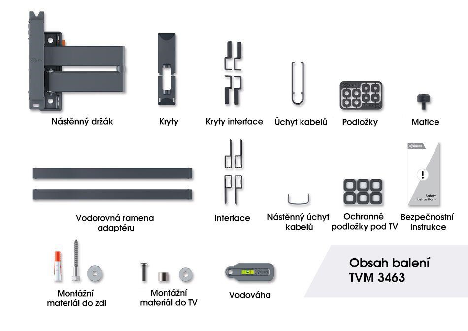 Hľadáte bezpečný, plne pohyblivý nástenný držiak pre svoju zraniteľnú OLED TV? Nástenný držiak, ktorý dokonale ladí s minimalistickým dizajnom vášho televízora? Zoznámte sa so štýlovým držiakom TVM 3463 z radu COMFORT Full-Motion+. Nástenný držiak je vhodný pre OLED televízory s uhlopriečkou 32 až 65 palcov a hmotnosťou do 25 kg. Dokáže sa otáčať o plných 180°. Vďaka tomu si môžete sledovanie svojho krásneho OLED televízora bez námahy vychutnať z ktorejkoľvek časti miestnosti.