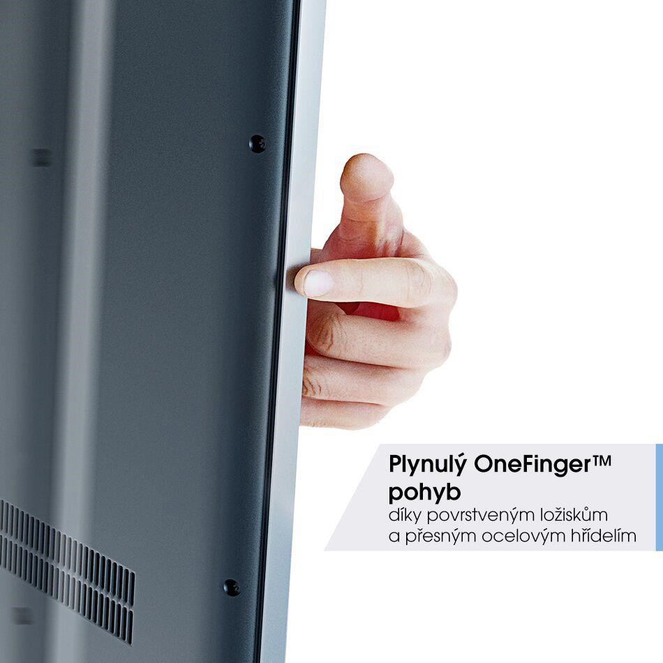 - Hladký pohyb OneFinger™ - vďaka teflónom potiahnutým ložiskám a presným oceľovým hriadeľom