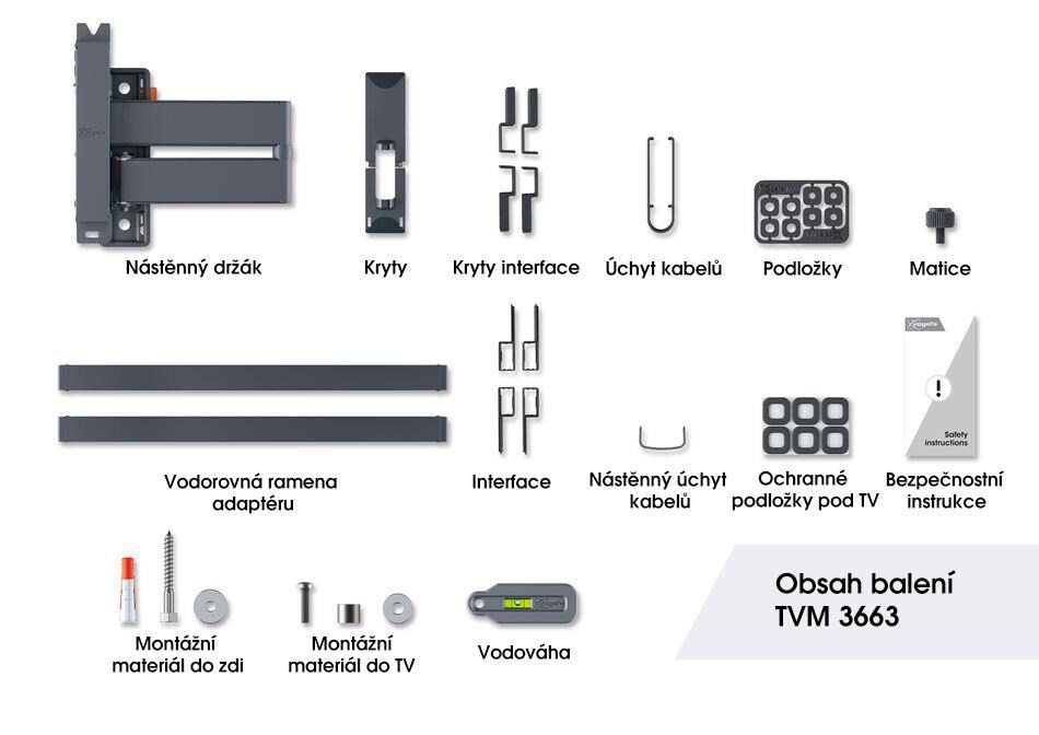 - Ochranné podložky medzi TV a držiakom - chráni zadnú stranu TV pred poškrabaním držiakom