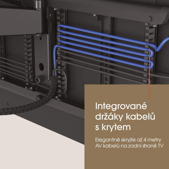 - Plne integrovaný systém vedenia káblov (CIS®) - Pripojte, chráňte a skryte káble od steny až po televízor
