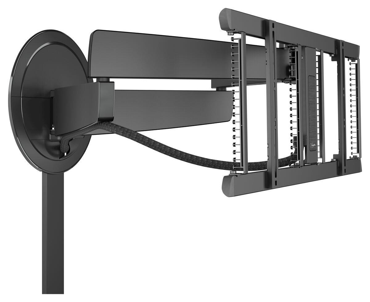 TV držiak DesignMount má dômyselný štyrramenný mechanizmus s dlhými a pevným nosnými ramenami. Vďaka tomu má veľký rozsah pohybu dopredu a umožňuje posunúť televízor až o 72 cm od steny. Ideálne pre montáž do skrinky alebo výklenku.