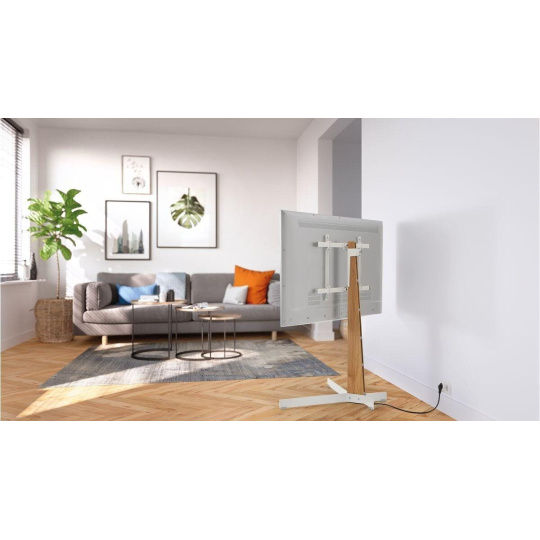 Predstavujeme Vogel's TVS 3695W, dokonale flexibilný, voľne stojaci TV stojan. Jednoducho umiestnite a nasmerujte svoj televízor vďaka stojanu s bezpečným, robustným a štýlovým dizajnom. TVS 3695W je vyrobený z prémiového dubového dreva s certifikáciou PEFC a ocele a je ideálny takmer pre všetky televízory s uhlopriečkou 40”-77” a hmotnosťou do 50 kg. Oceľové prvky sú lakované na bielo.
