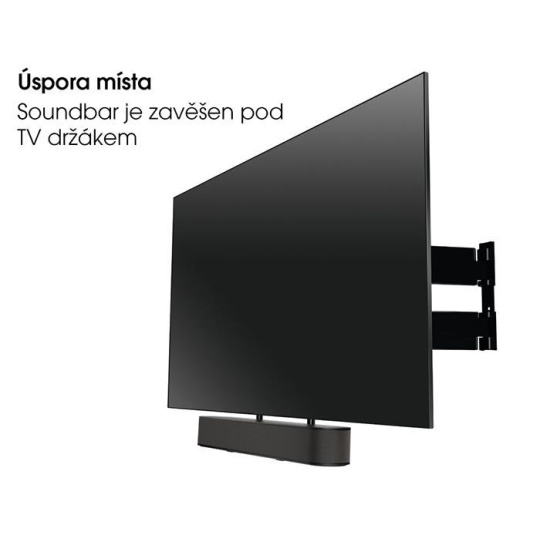 Je možné ho namontovať prakticky na akýkoľvek TV držiak. Pri nakláňaní TV sa rovnako nakláňa aj soundbar, takže vždy získate ten najlepší obraz bez zníženia kvality zvuku.
