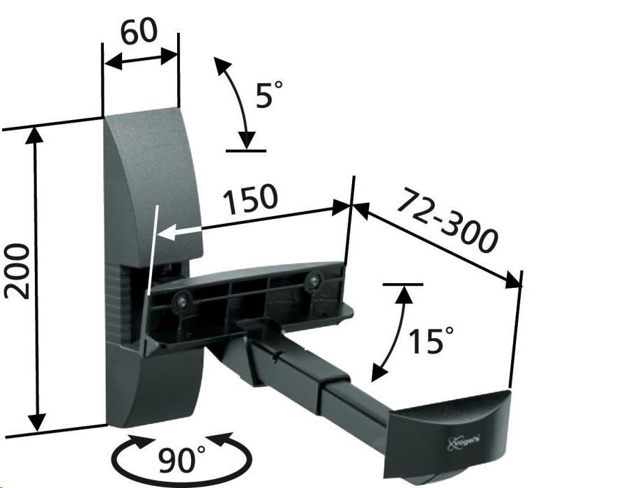 Nástenný držiak bez nutnosti vŕtania do reproduktorovej skrinky, ktorá je upnutá čeľusťovým mechanizmom. Ideálne pre stredne veľké regálové reproduktory