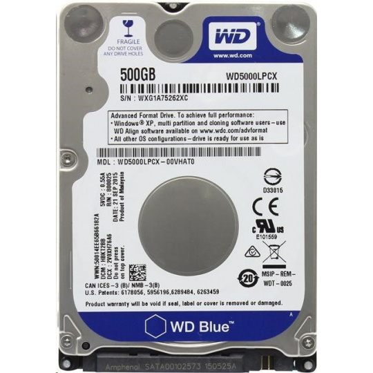 WD BLUE WD5000LPZX 500GB SATA/600 16MB cache, 2.5" AF, 7 mm, CMR