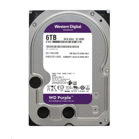 WD PURPLE WD64PURZ 6TB SATA/600 256MB cache, nízka hlučnosť, CMR