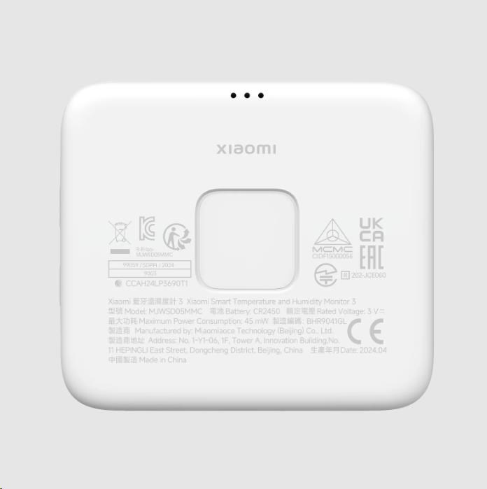 Inteligentný monitor teploty a vlhkosti Xiaomi 3 využíva knoflíkovú batériu CR2450 s veľmi nízkou spotrebou energie. Jedna batéria vydrží v pohotovostnom režime až 1,5 roka a zabezpečí tak dlhodobú ochranu vás aj vašej rodiny.