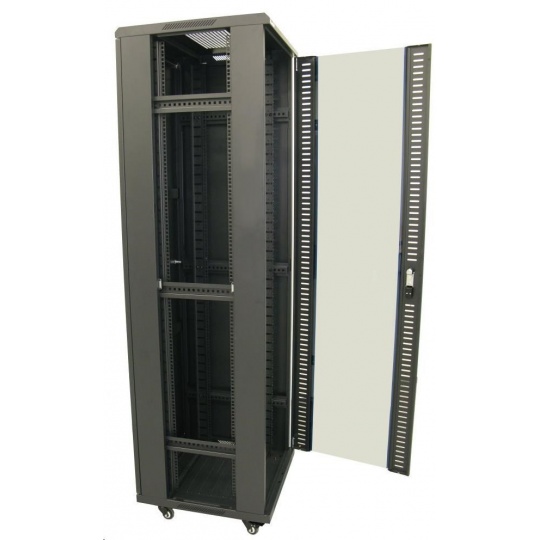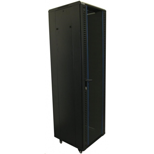 XtendLan 19" stojanový rozvaděč 42U 600x600, nosnost 800kg, skleněné dveře, plná záda, kolečka,černý