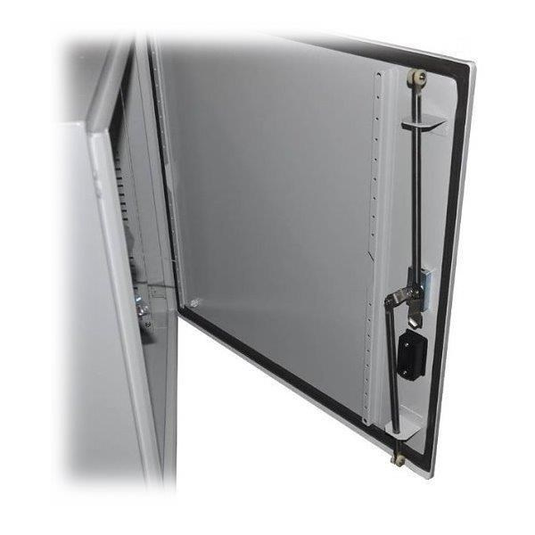 Vonkajší nástenný rozvádzač vyrobený z válcovanej ocele s hrúbkou 1,5 mm. Trojvrstvová povrchová úprava. Ukončenie: dvere - plné, otváracie o 110°, 3-bodový zámok, výmena smeru otvárania, tesnenie z penového polyuretánu zádny kryt - plný bočný kryt - plný horný kryt - plný