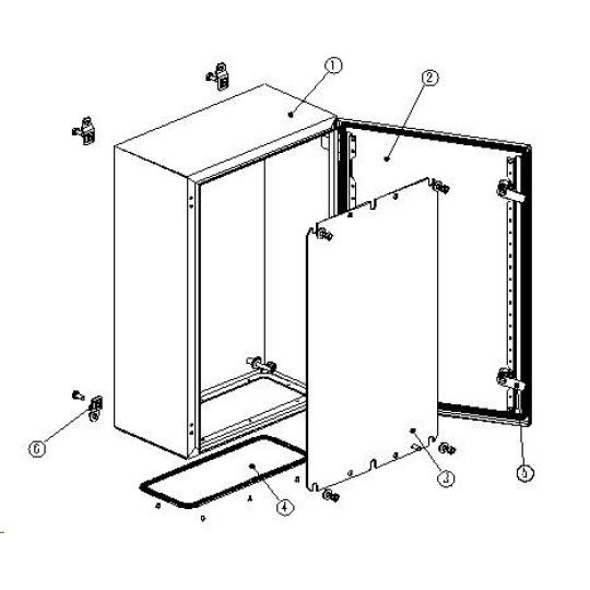 Rozvádzač je vyrobený z valcovej ocele hrúbky 1,5 mm. Normy: IEC60529, EN60529/10.91, GB4208-93 Detaily konštrukcie: dvere - plné, otvárajúce sa o 110 stupňov, montáž pravá alebo ľavá (používateľsky vymeniteľné otváranie) zadný kryt - plný bočný kryt - plný horný kryt - plný montážna doska: