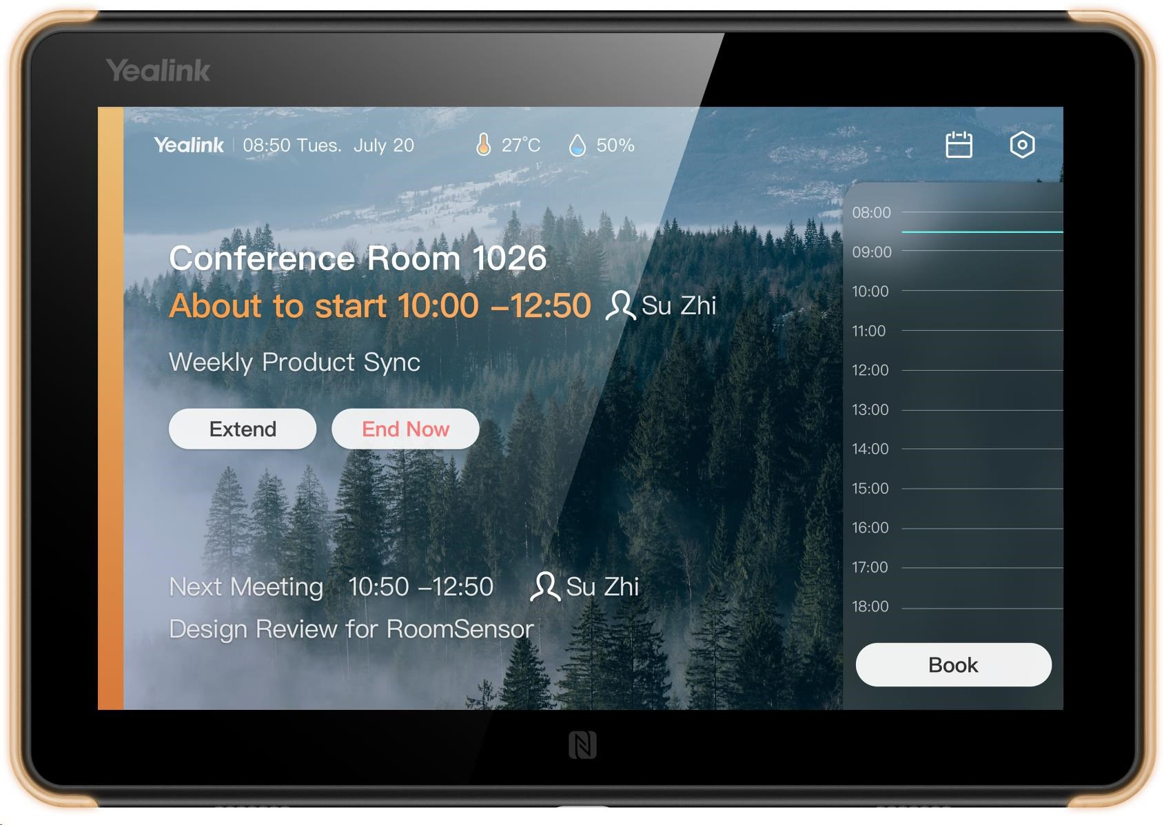 Yealink RoomPanel je profesionálne multifunkčné zariadenie na plánovanie miestnosti s 8-palcovou dotykovou obrazovkou, operačným systémom Android 9.0, plne RGB LED, duálnym mikrofónom a súpravou reproduktorov. Kompaktný panel typu všetko v jednom nielenže zobrazuje stav miestnosti v reálnom čase, ale umožňuje aj ad hoc rezervácie schôdzok alebo ďalších rezervácií zasadacích miestností, čím sa zvyšuje efektivita správy pracovného priestoru v podniku. Vďaka podpore PoE a dodávaným multi-voliteľným konzolám sa dá ľahko inštalovať na rôzne povrchy (betónová stena/sklo/drevo atď.).
