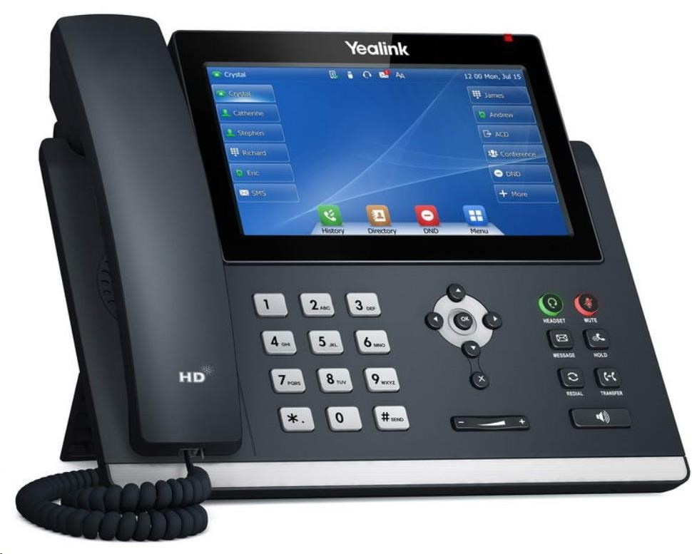 IP telefón Yealink SIP-T48U, 7" farebný dotykový displej 800x480, 2x RJ45 10/100/1000, PoE, 16x SIP, 1x USB, bez adaptéra