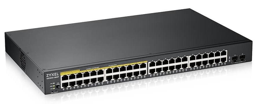 Zyxel GS1900-48HP v2 50portový gigabitový webový inteligentný PoE prepínač, 48x gigabitový RJ45 (24x PoE), 2x SFP, rozpočet PoE 170W