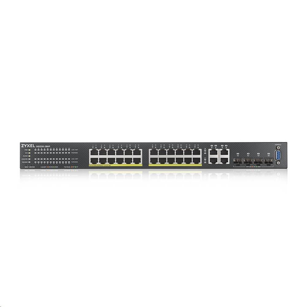 Zyxel GS2220-28HP 28-portový gigabitový PoE manažovaný L2 switch, 24x gigabitový RJ45, 4x gigabitový RJ45/SFP, PoE 375 W